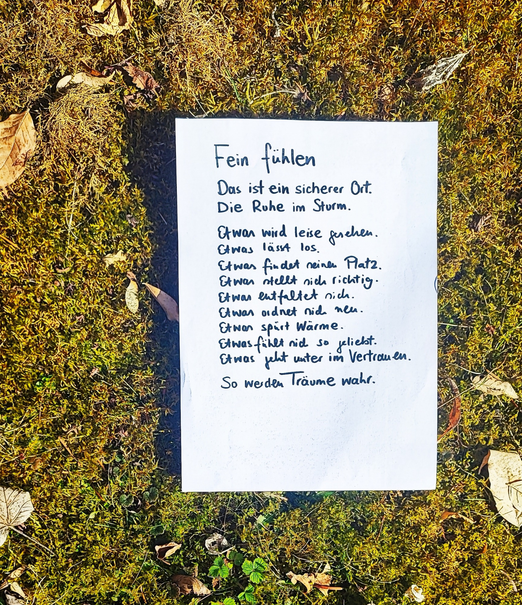Ich biete traumasensible Formate für Menschen, die sich nach ihrer Weichheit sehnen. Mit der inneren Weichheit wieder in Verbindung zu sein bedeutet, den inneren Schutz vor dem Leben, der Lebendigkeit, aufgeben zu können aus der tiefen Gewissheit, dass wir mit allem klarkommen werden. Egal was im Außen auf uns zukommt. Es ist eine wunderschöne, echte Form, das Leben zu spüren und als ein Teil davon zu sein.